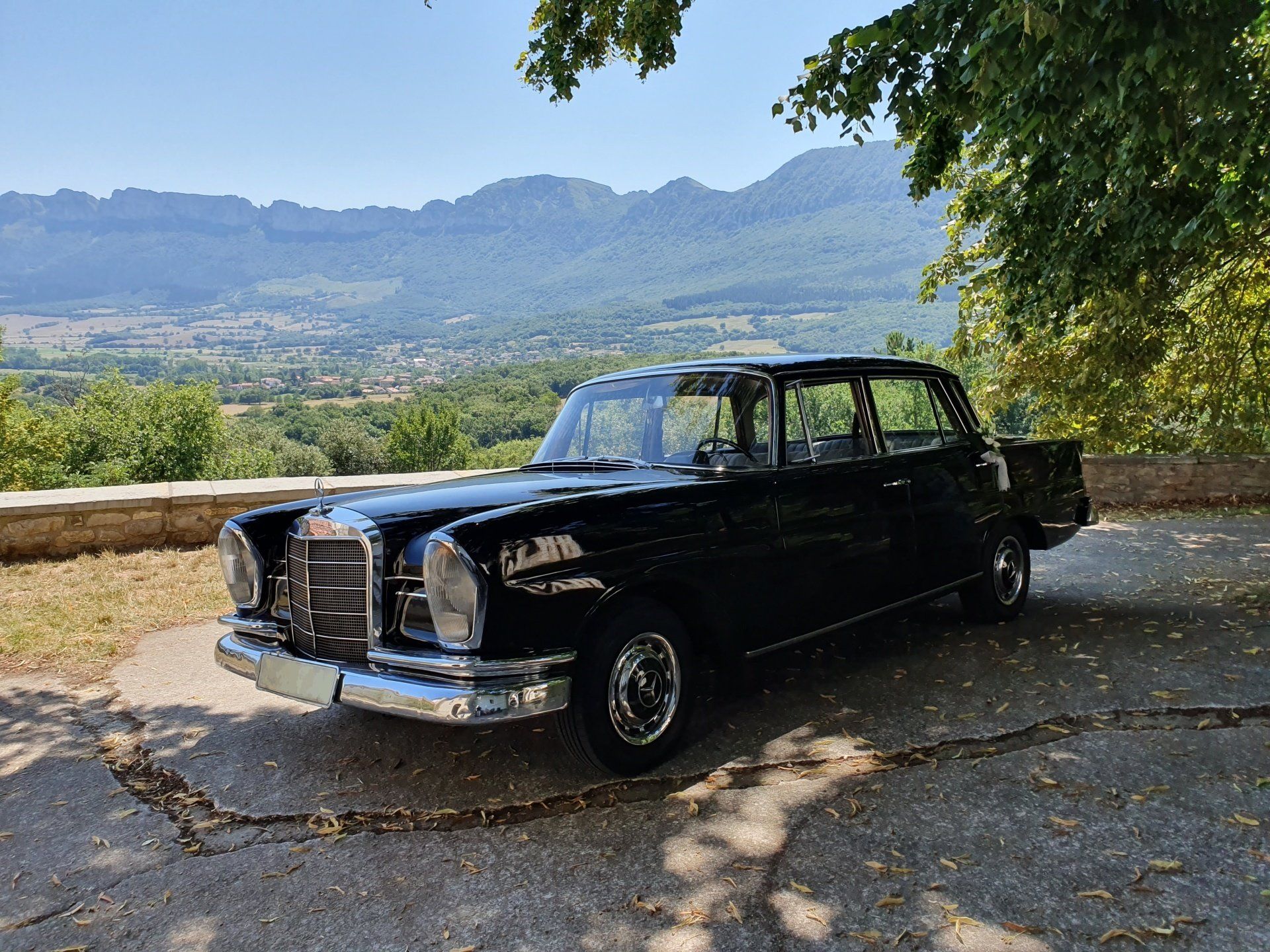 El Mercedes 220S “Colas”, perteneciente a la serie W111, constituía un símbolo elistista en los años sesenta. El diseño de la carrocería cambiaba de moda por la influencia de los coches americanos y en Mercedes se introdujeron unas pequeñas aletas traseras que sirvieron de apodo para este modelo.